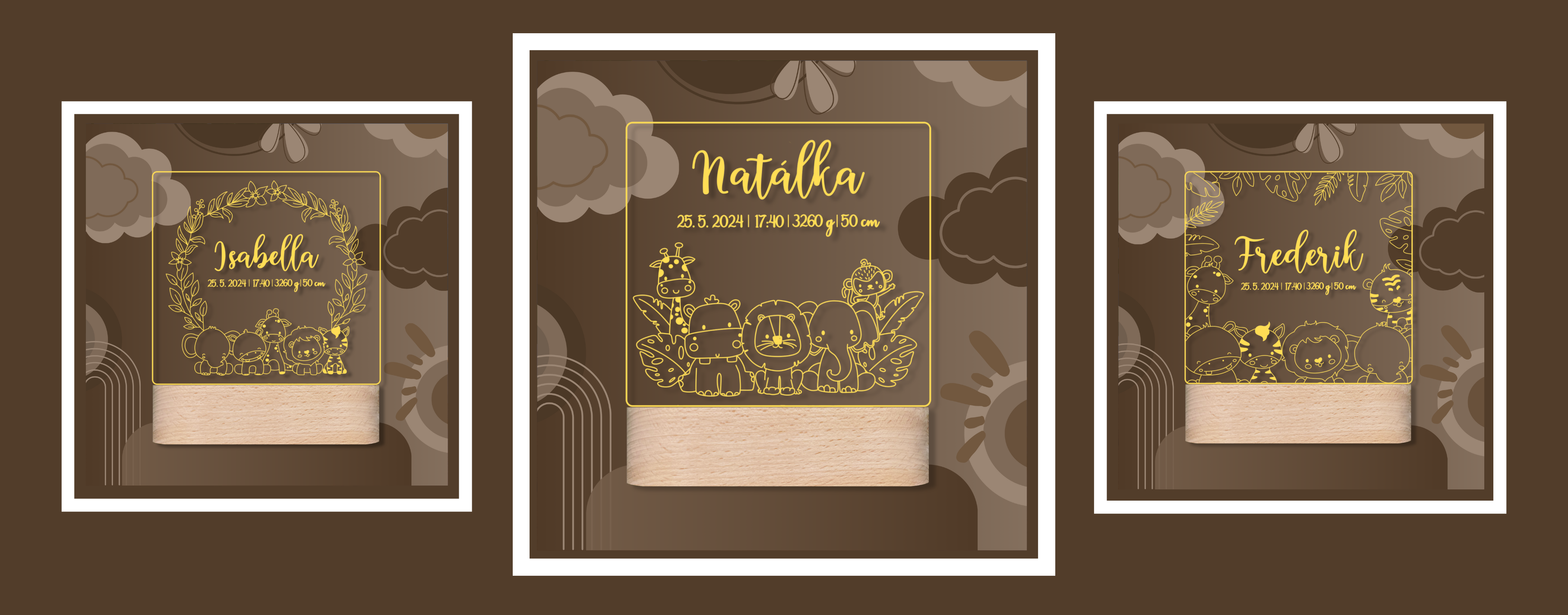 Krásná lampička k narození dítěte. Personalizujte ji s detaily o narození a vytvořte nezapomenutelnou vzpomínku pro rodiče i děťátko.